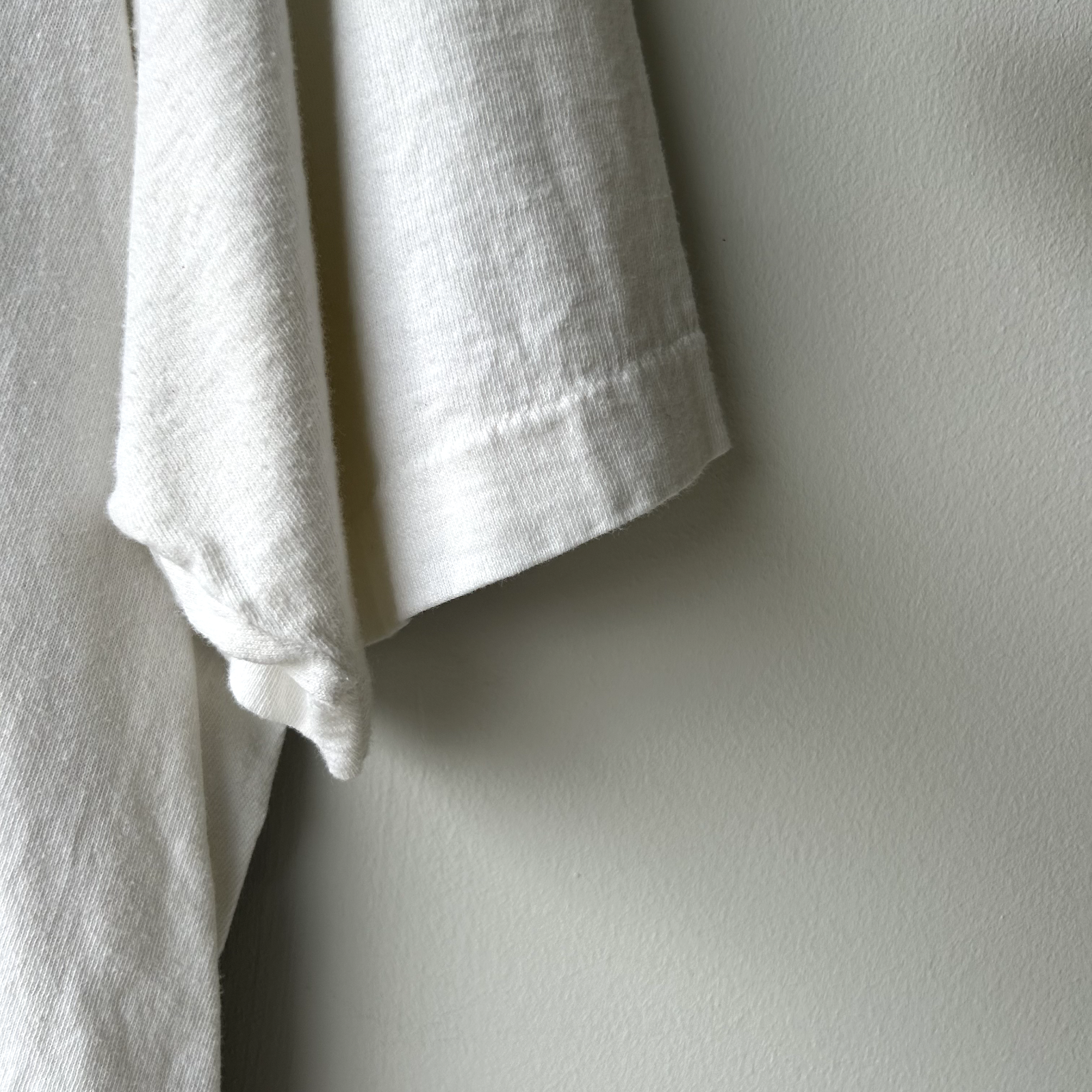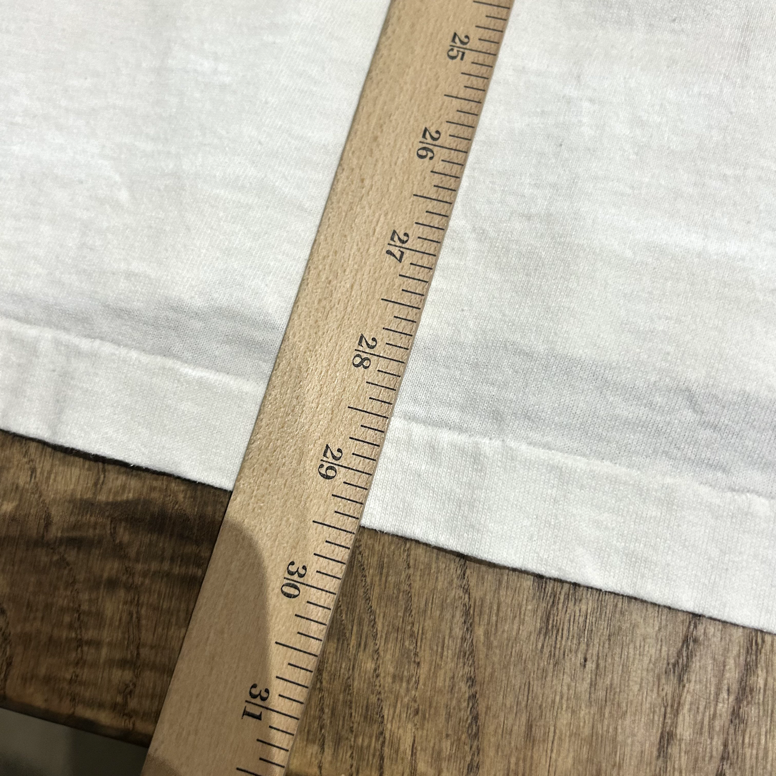 Wear and fading from age. Small holes/ tears on lower front and around neckline. Overall good condition! *This shirt has been washed - Please review pictures*