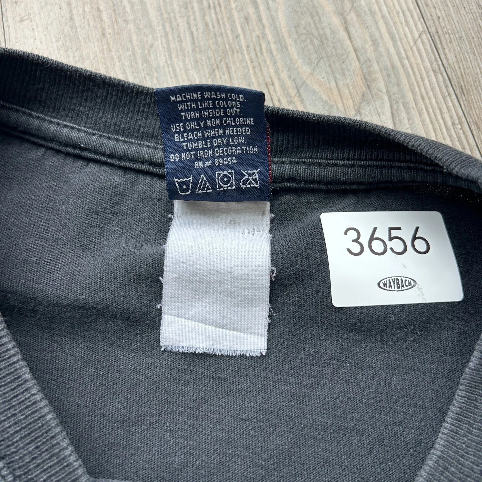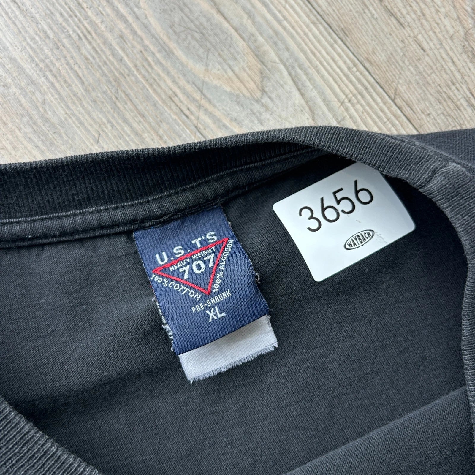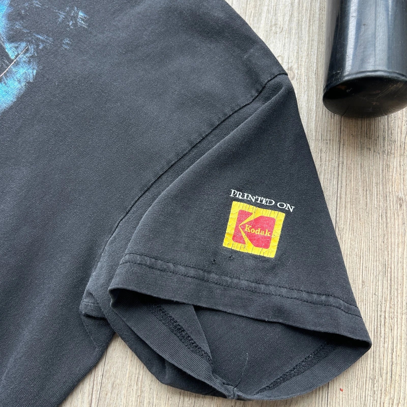 No major flaws. Faint marks on back. Two tiny holes on sleeve. Overall good condition! *This shirt has been washed - Please review pictures*