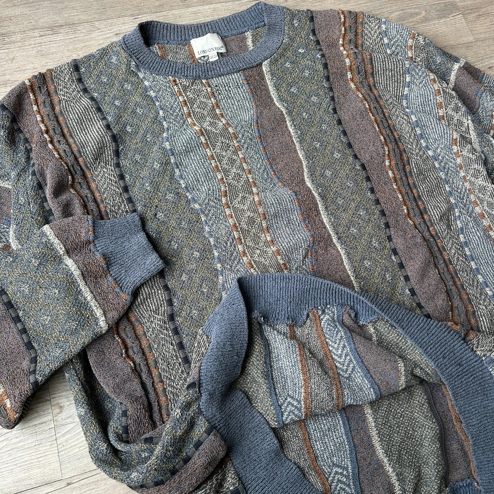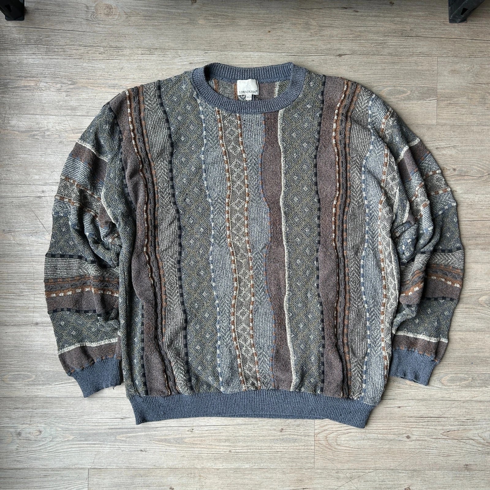 VINTAGE | 3D Textured Earthtone Coogie Style Knit Sweater sz 2XL
