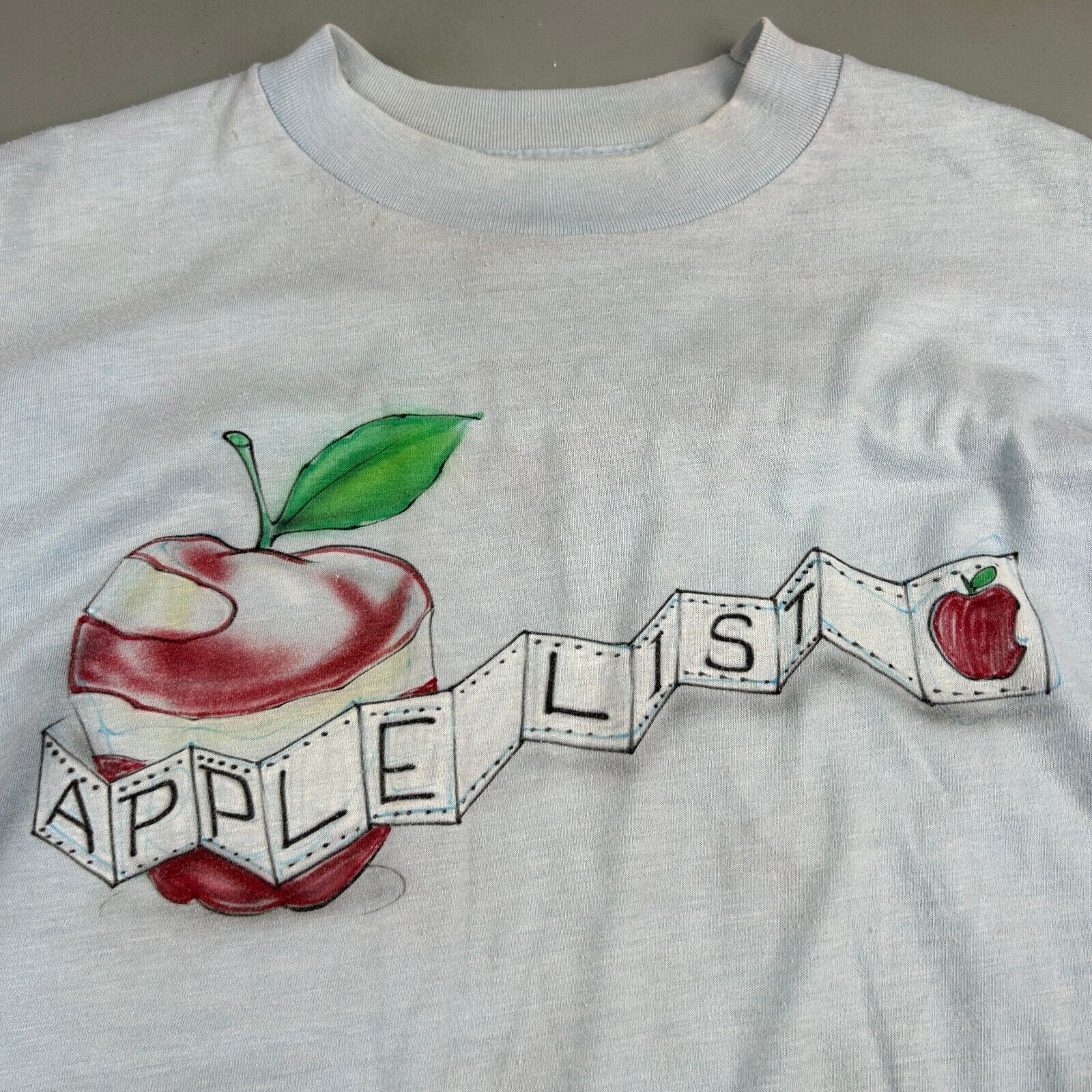 VINTAGE 70s-80s ' Apple List Lite-Blue Airbrush Art T-Shirt sz M Adult