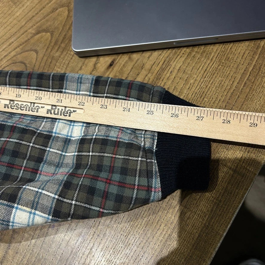 No stains or holes. Faint yellowing/ spots around plaid side. Overall good condition! - please review photos*
