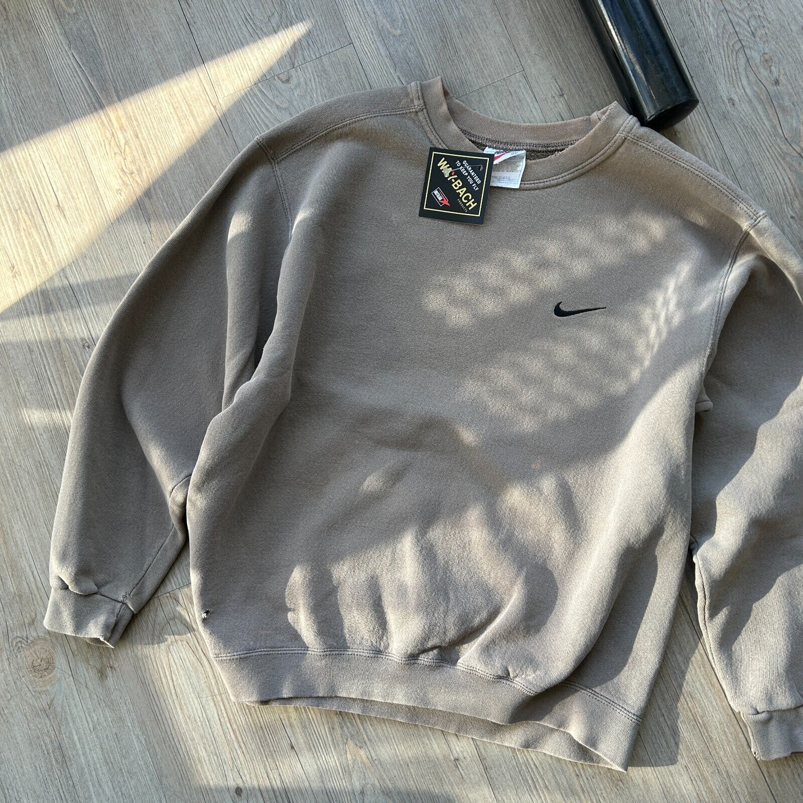 VINTAGE 90s ' NIKE Embroidered Swoosh Brown Crewneck Sweater sz M Adult