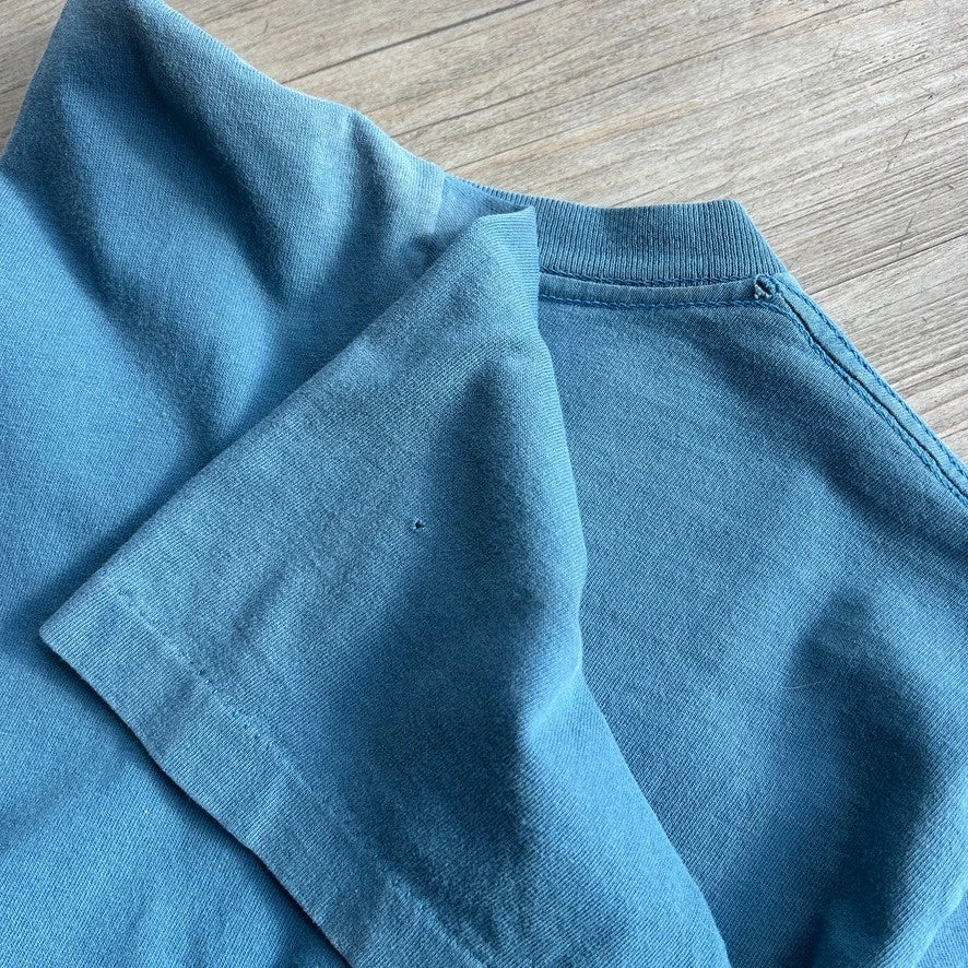 No stains. Tiny hole on lower front, sleeve and back neck seam. Overall good condition! *This shirt has been washed - Please review pictures*
