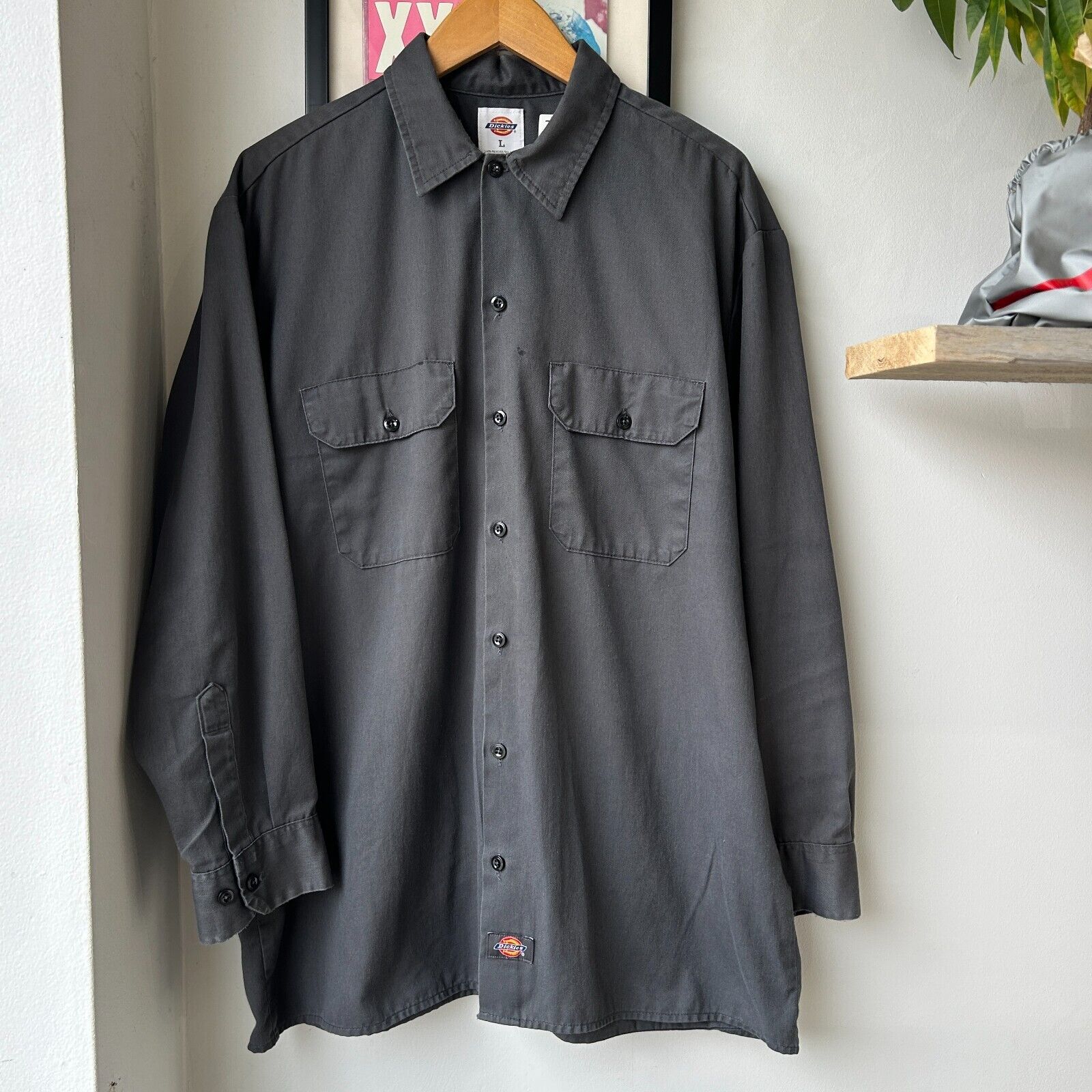 VINTAGE ' Dickies Grey Button Down Work Shirt sz L