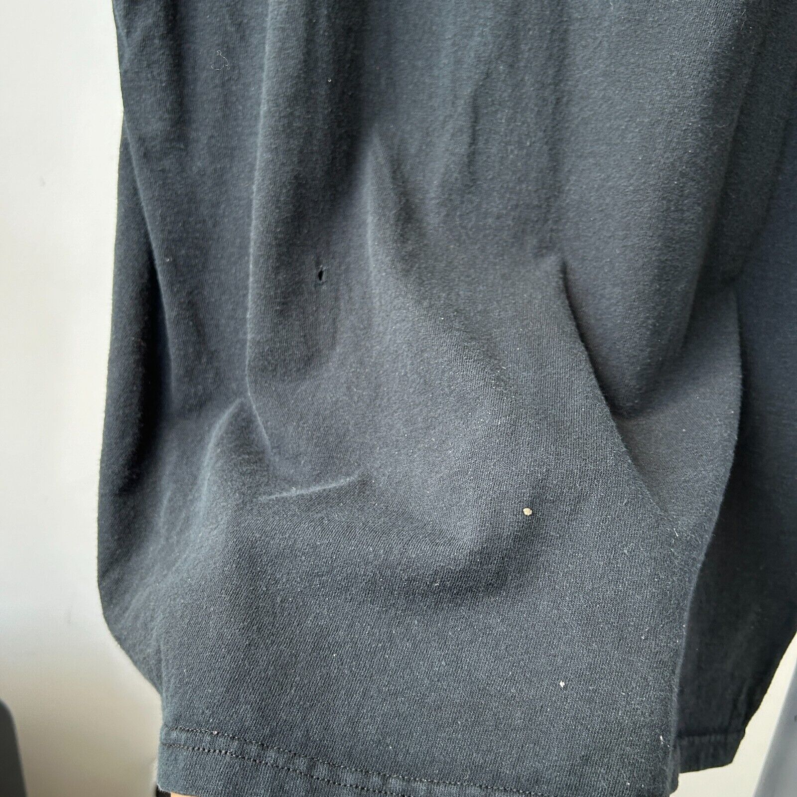 Wear and fading from age. Tear on shoulder/ neckline. Small marks and hole on lower back. Overall good condition! *This shirt has been washed - Please review pictures*
