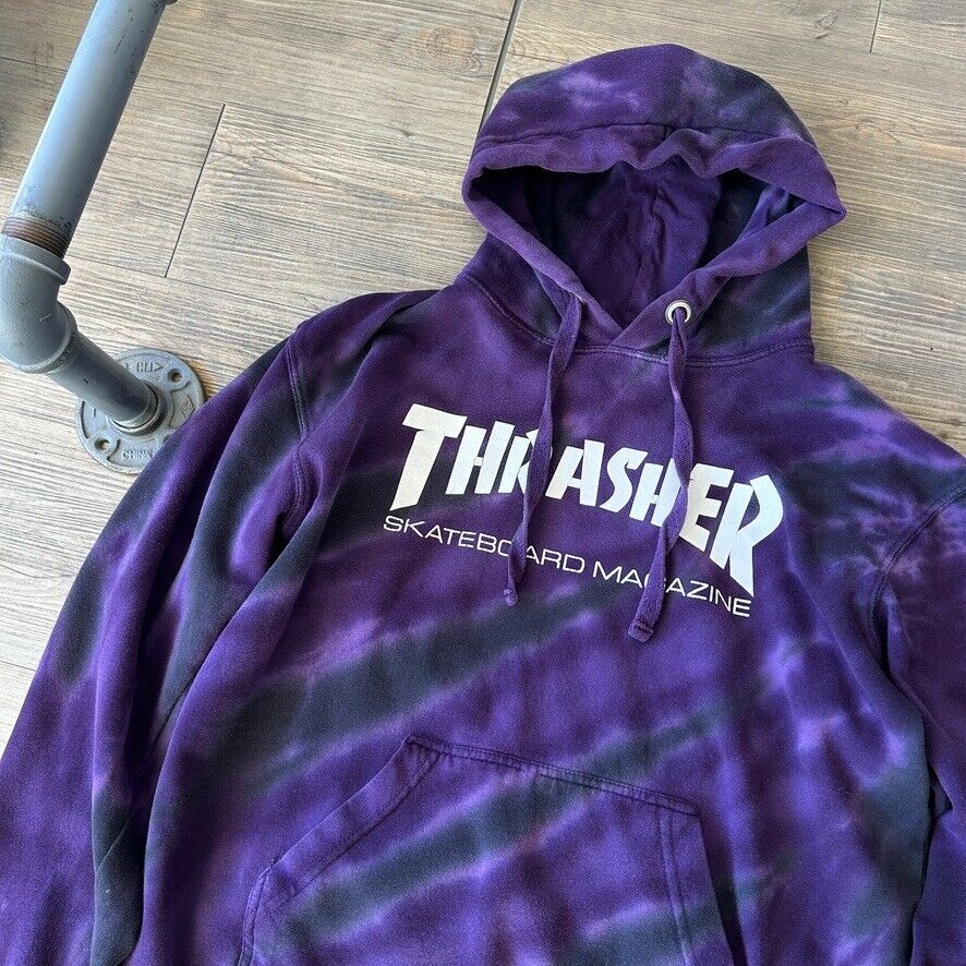 VINTAGE ' Thrasher Magazine Purple Tye Dye Hoodie Sweater sz M